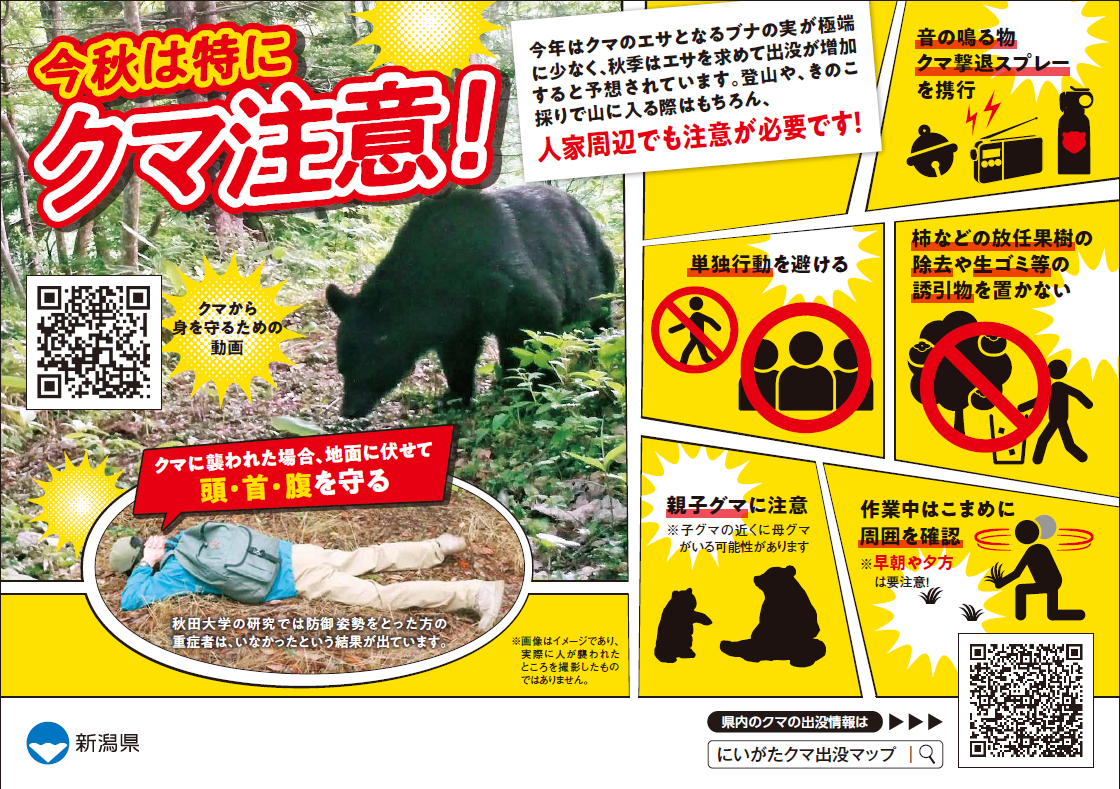 市内では、昼夜問わずクマの出没・目撃が相次いでいます。市街地でも山や川の周辺ではクマに注意してください。クマ出…